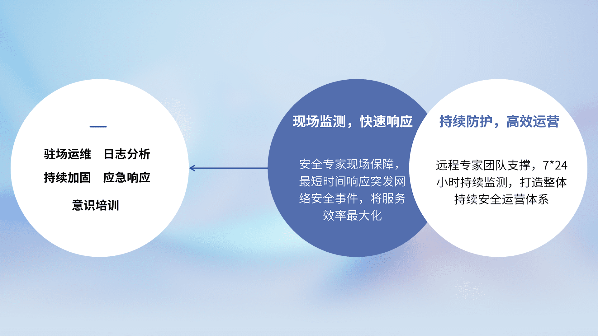 针对客户行业特性,,,提供专属的一站式安全管理服务,,,,帮助客户全面感知网络空间威胁,,通过安全专家的线上、、、线下防护支持,,,实现风险闭环,,,,将安全保障常态化,,,,为客户打造常态化安全运维运营服务。。。。
